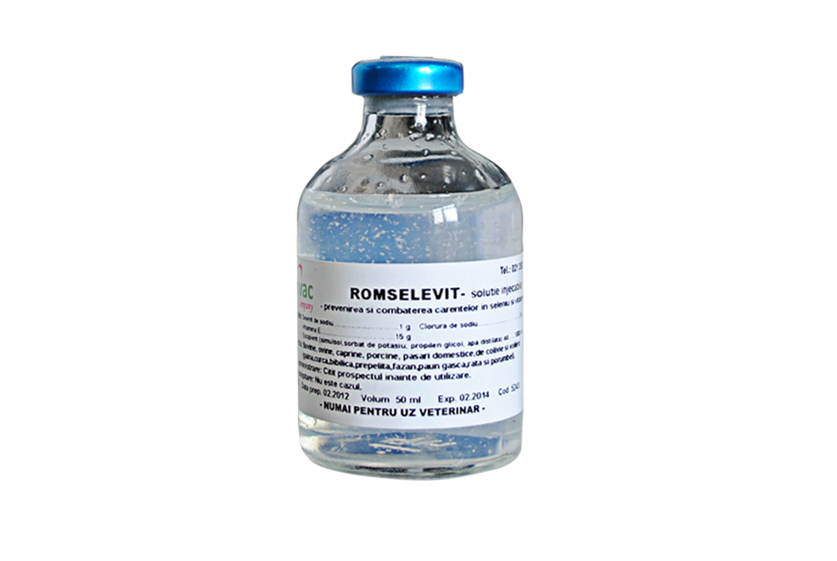 Indicatii: Romselevit se foloseste atat in scop profilactic cat si curativ in miodistrofii si tulburari de crestere, la vitei, miei, iezi, purcei (in special in fatari timpurii), in hepatoza purceilor, pasari, in retentii placentare, tulburari de nutritie