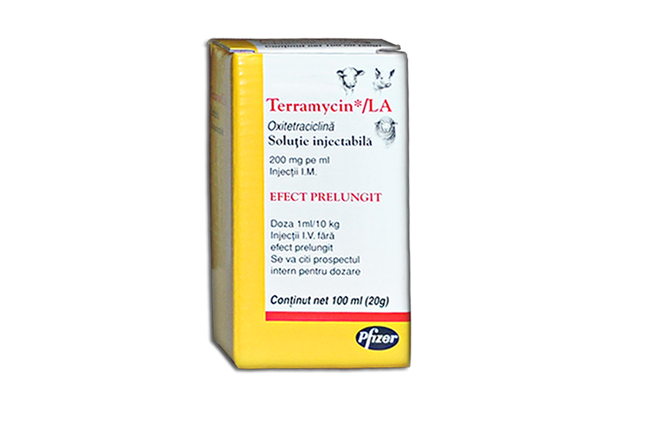Indicatii: Solutie injectabila, sterila, de culoare galbuie ce contine Oxitetraciclina dihidrat, avand un spectru antimicrobian extrem de variat, fiind activa impotriva unei game foarte mari de bacterii Gram pozitive si Gram negative, unele Mycoplasme, protozoare